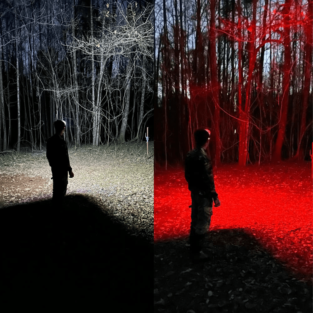Red mode lights your path without blinding others - and it won’t attract bugs like white light does.